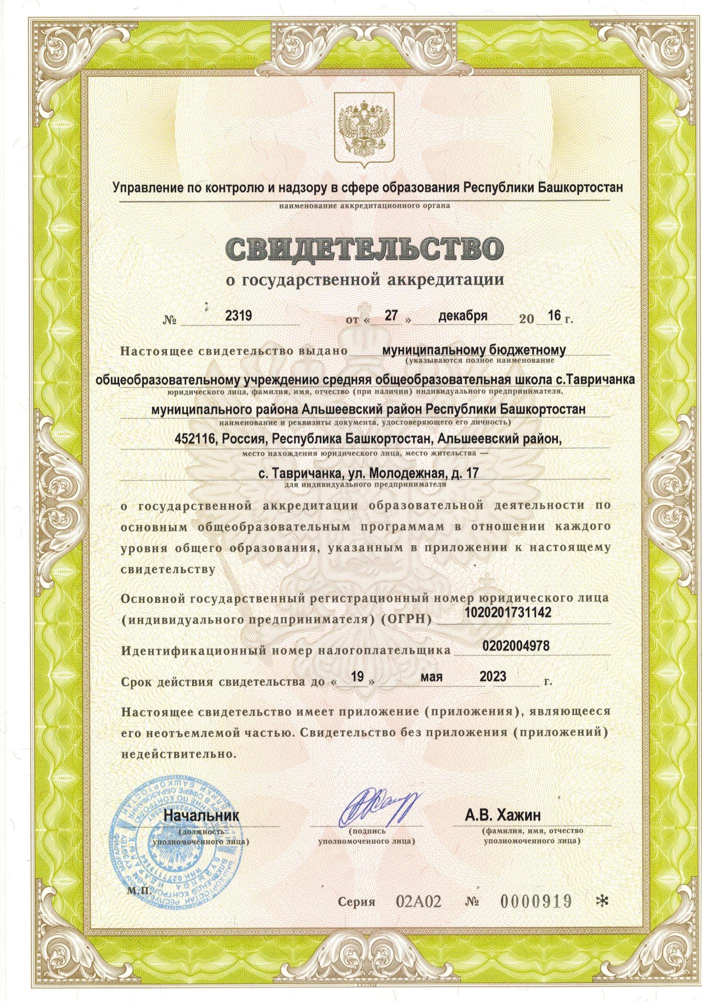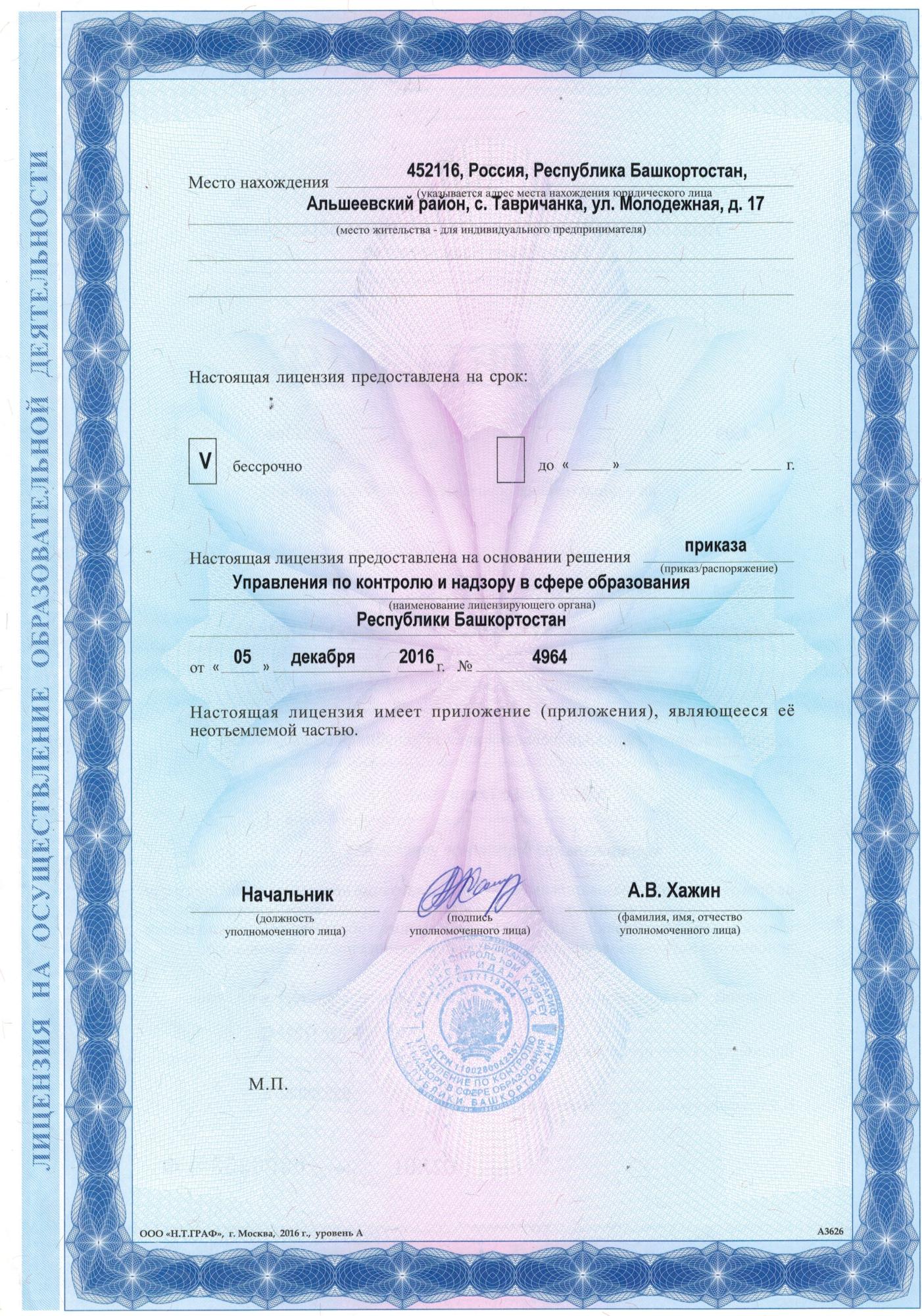 4. Срок действия государственной аккредитации образовательной программы: бессрочно