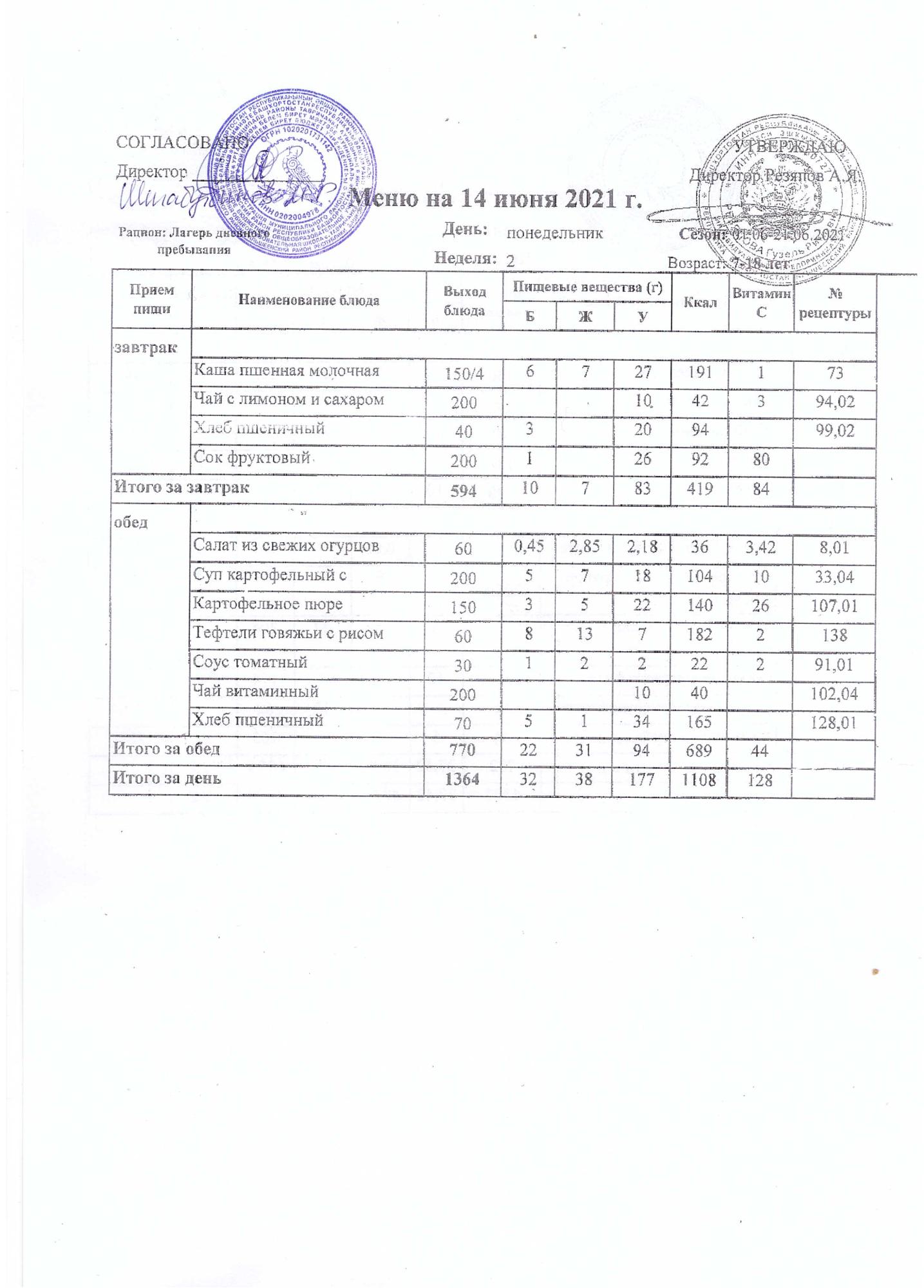 Стоимость школьного питания